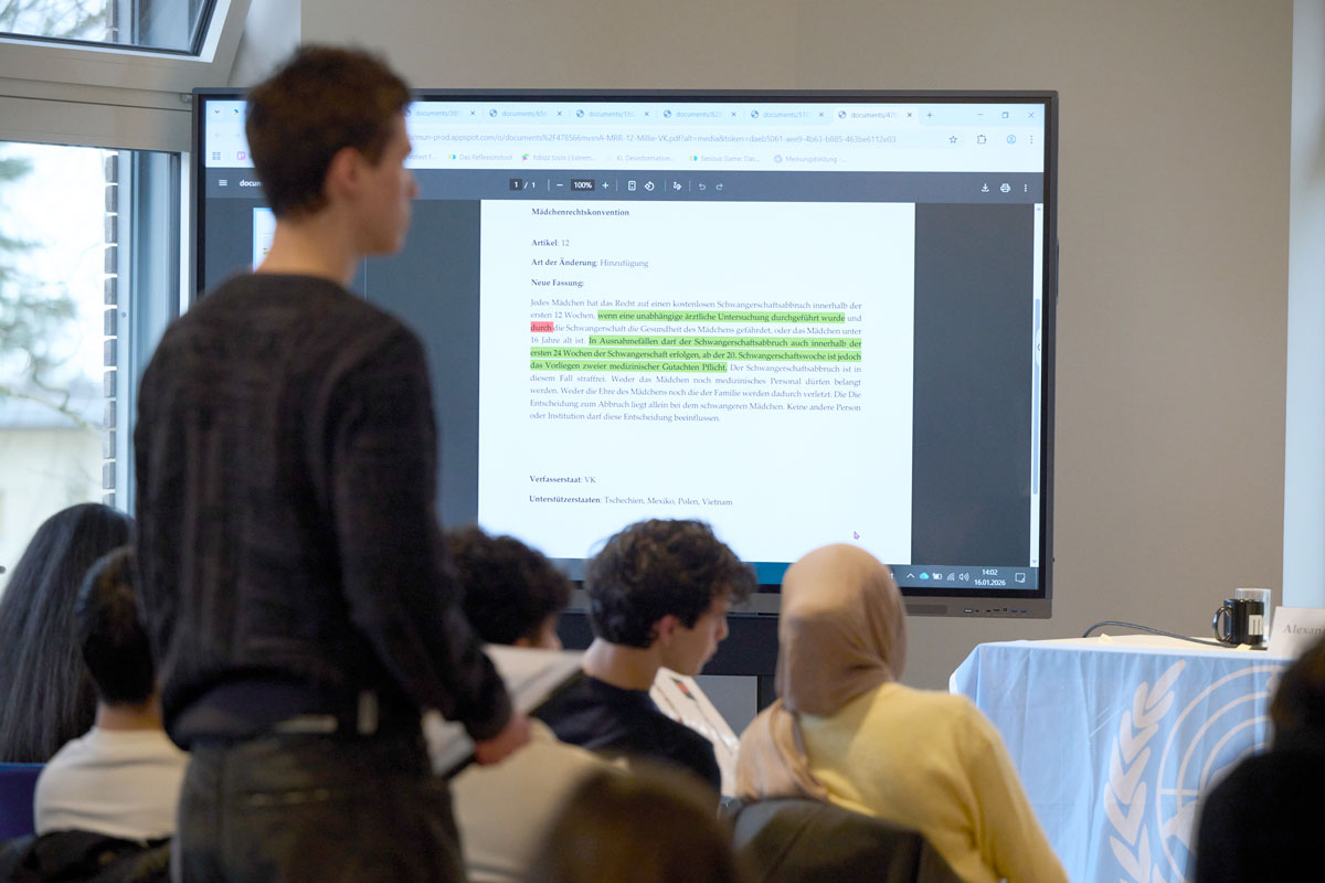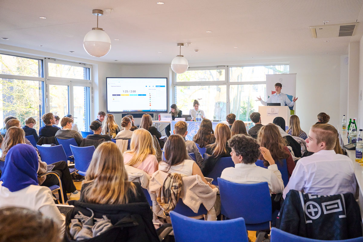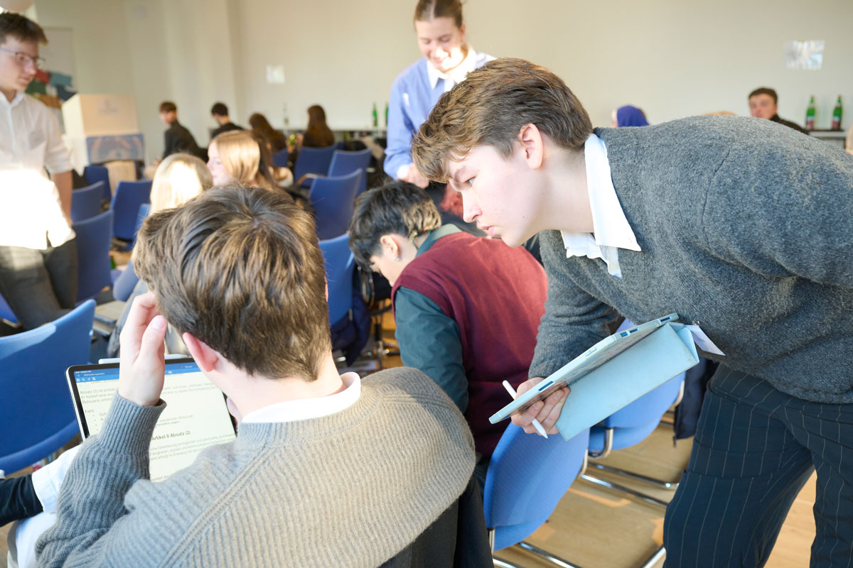 Auch im November 2023 kamen wieder mehr als 200 Schüler*innen in zwei Durchläufen im HAUS RISSEN zusammen, um als Delegierte zu verhandeln und über zwei Konventionsentwürfe zu entscheiden.