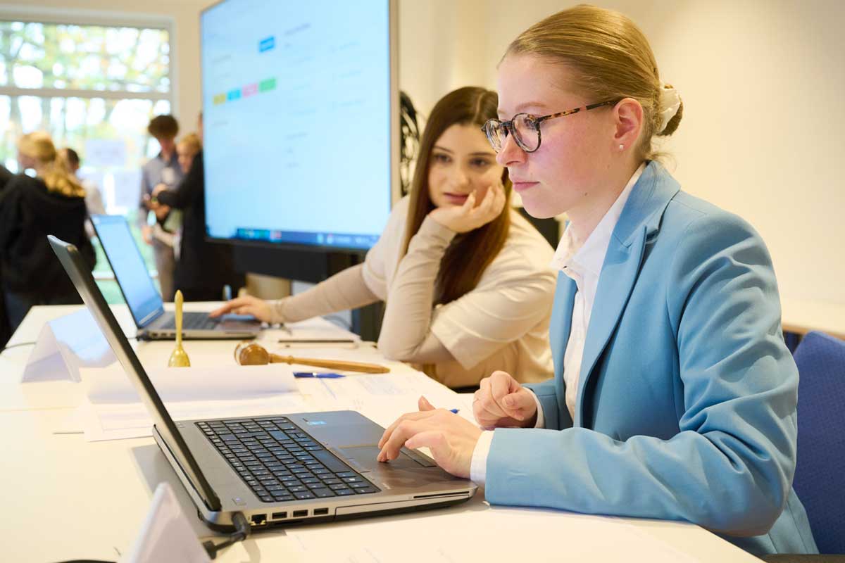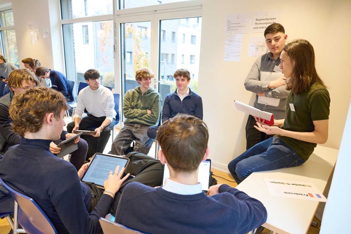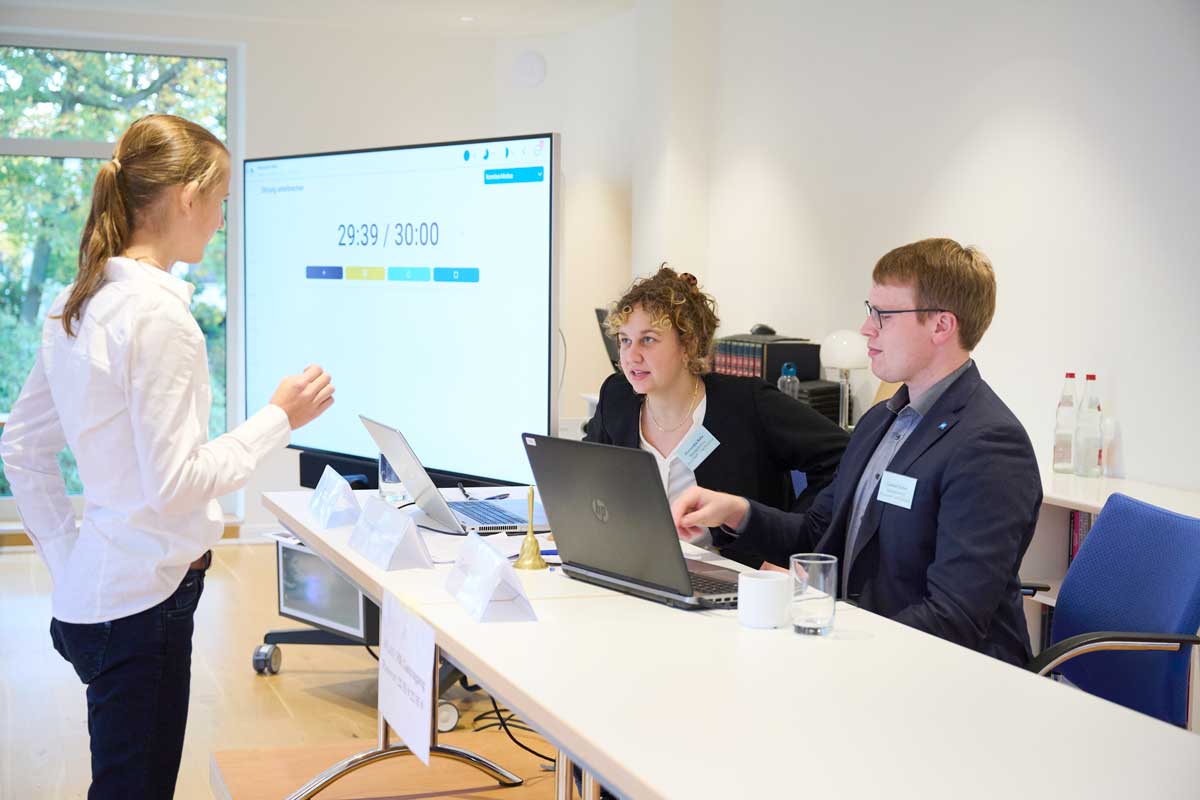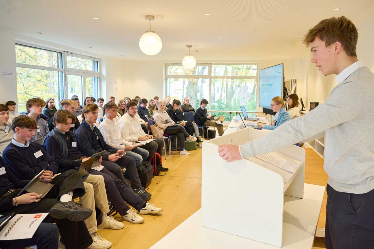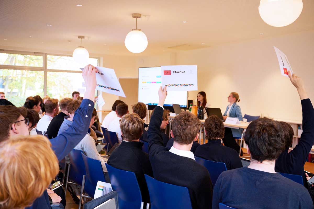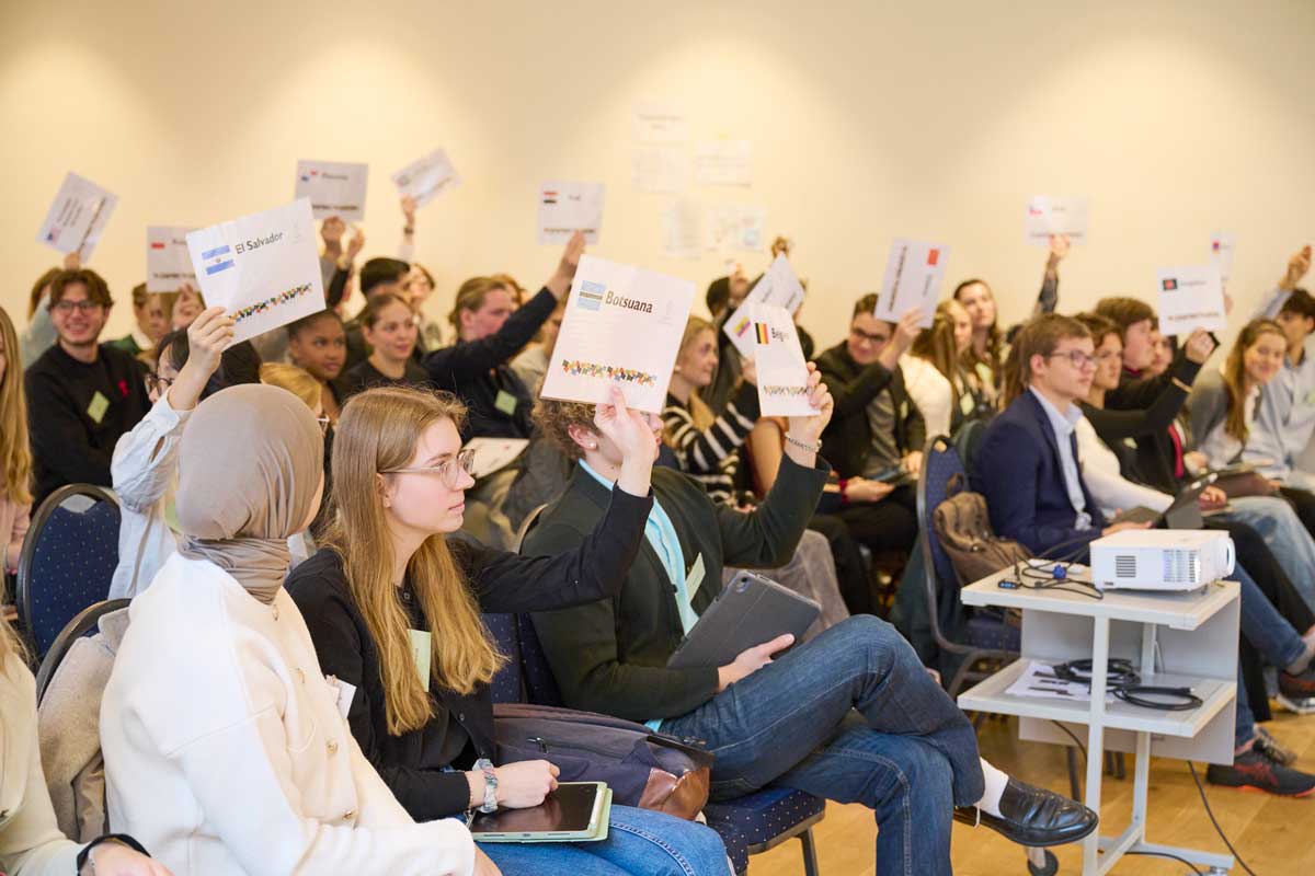 Auch im November 2023 kamen wieder mehr als 200 Schüler*innen in zwei Durchläufen im HAUS RISSEN zusammen, um als Delegierte zu verhandeln und über zwei Konventionsentwürfe zu entscheiden.